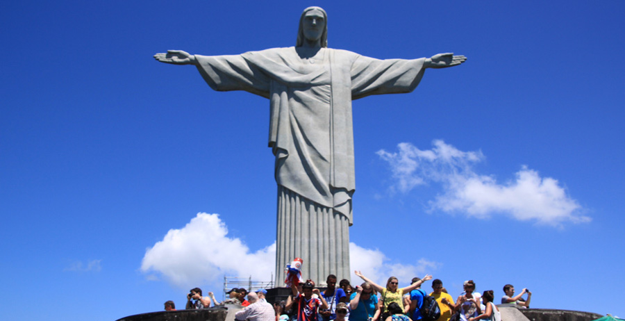 Completed in 1931 and standing 120 feet tall, Christ the Redeemer (O Cristo Redentor) in Rio de Janiero is the second largest statue of Christ in the world. Cristo Redentor depicts Christ with his arms spread wide in a welcoming gesture, representing his role as redeemer of the world. It stands 120 feet high including the pedestal and is 98 feet wide. Made of concrete and soapstone and sculpted in a modern style, it weighs a total of 635 tons. From the parking lot or train terminus, visitors have a choice of 220 steps or a system of elevators to reach the statue.