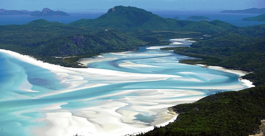 Some of Queensland's most well-known national parks include the Daintree National Park; the Whitsunday Islands National Park; and the Great Barrier Reef Marine Park. The Wet Tropics of Queensland is one of only few sites worldwide which met all four criteria for World Heritage listing. The Great Sandy National Park on Fraser Island is home to the world's largest sand island and abundant wildlife, including whale-watching in winter. The waters from Caloundra to the southern tip of South Stradbroke Island form the Moreton Bay Marine Park.