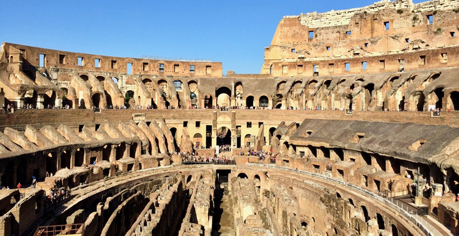 The Colosseum also known as the Flavian Amphitheatre s an oval amphitheatre in the centre of the city of Rome, Italy. Built of concrete and sand, it is the largest amphitheatre ever built. The Colosseum is situated just east of the Roman Forum. The Colosseum could hold, it is estimated, between 50,000 and 80,000 spectators, having an average audience of some 65,000; it was used for gladiatorial contests and public spectacles such as mock sea battles ), animal hunts, executions, re-enactments of famous battles, and dramas based on Classical mythology.